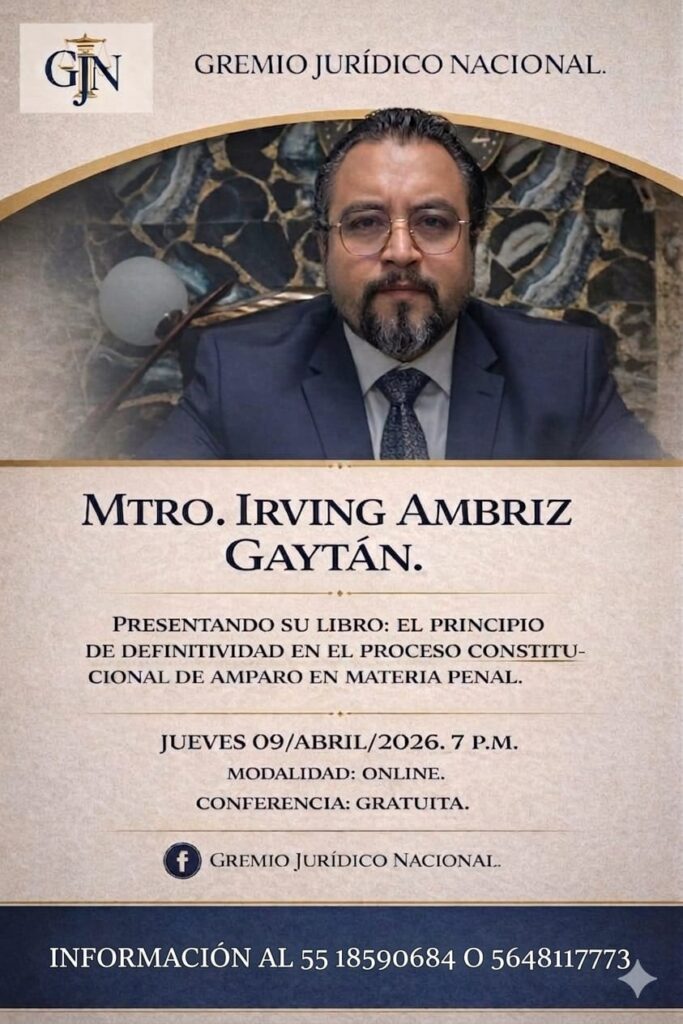 - El exitoso abogado Irving Ambriz Gaytán es uno de los autores de esta colección que lleva por título: “El principio de definitividad en el proceso constitucional de amparo en materia penal”.