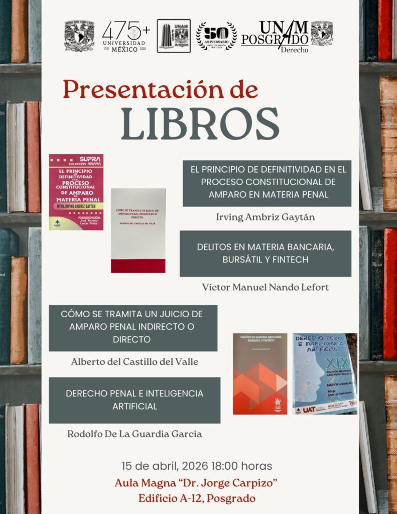 En próximos días, inicia un tour de presentación de su más reciente libro: “El principio de definitividad en el proceso constitucional de amparo en materia penal”,entre estas presentaciones está la del próximo jueves 9 de abril a las 19 hrs. en modalidad on line.
